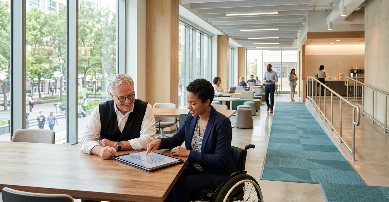 Many design firms, developers, and architects challenge themselves to think beyond the technical requirements and actively create spaces that focus on inclusion and equity for all users – a seamless experience for everyone. Be it tactile and intuitive paths for the hearing and visually impaired, to step-free access or spaces equally inviting to both the young and the old. In this post, we’re going to explore the concepts that they put into practice to create the environments we know and love.